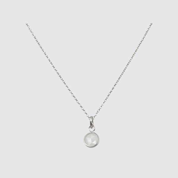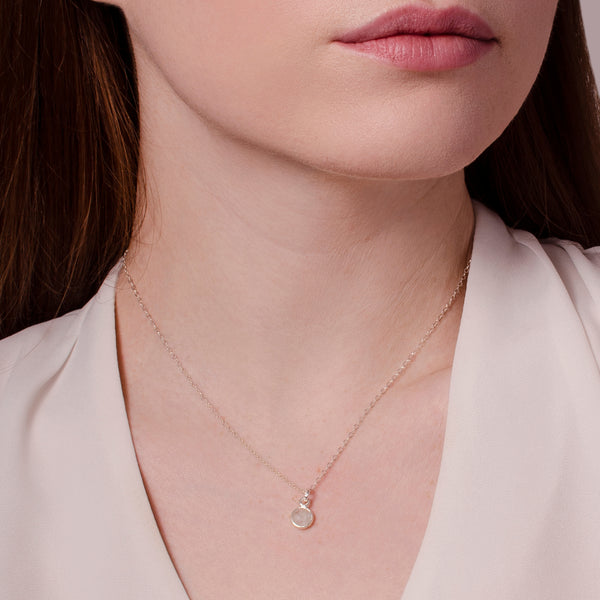 Dainty Sterling silver necklace in a choice of lengths with a wrapped silver genuine moonstone charm. Moonstone is June's birthstone. Matching earrings available.