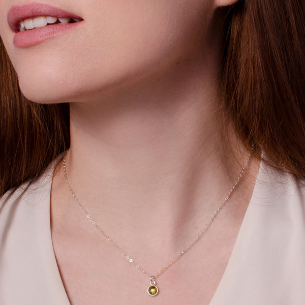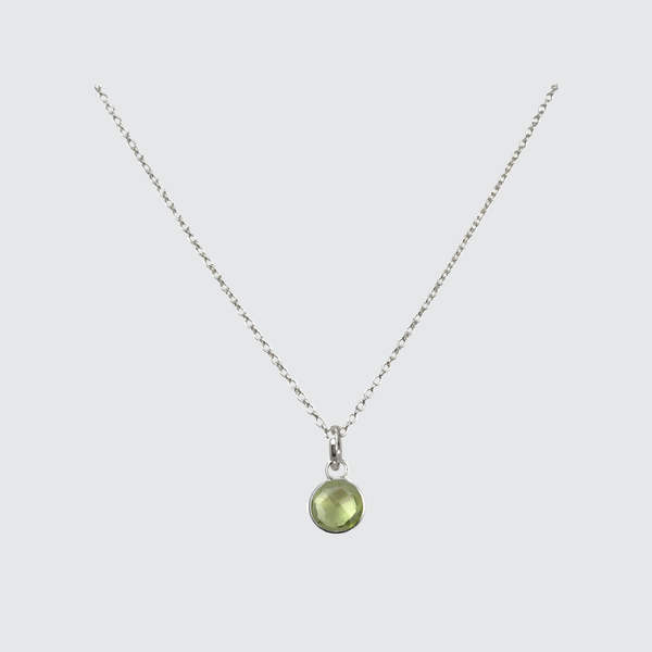 This Dainty Peridot Charm Necklace is crafted from sterling silver, making it perfect for an elegant look. Choose between different lengths to find the piece that's perfect for you. Plus, it features the beautiful August birthstone, period green gemstone, for an extra touch of sophistication.